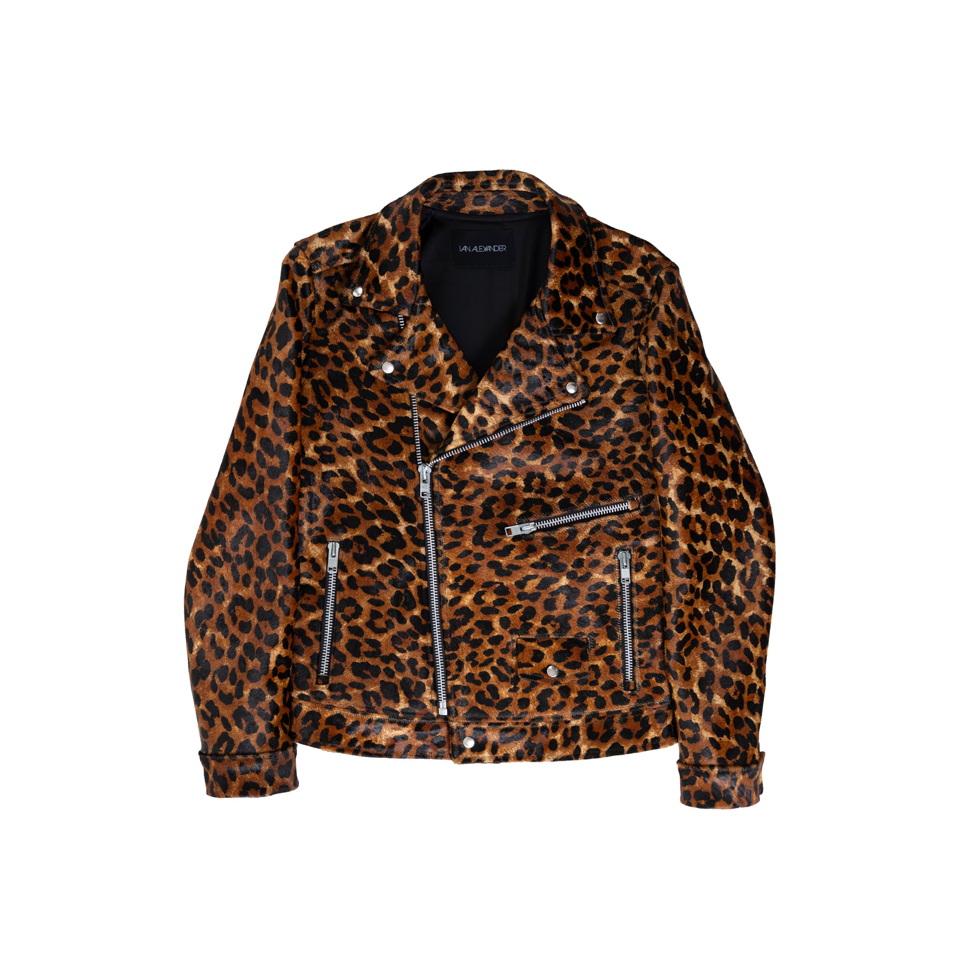 ASYMMETRICAL BIKER JACKET IN HAIR-ON PRINTED COWHIDE LEATHER