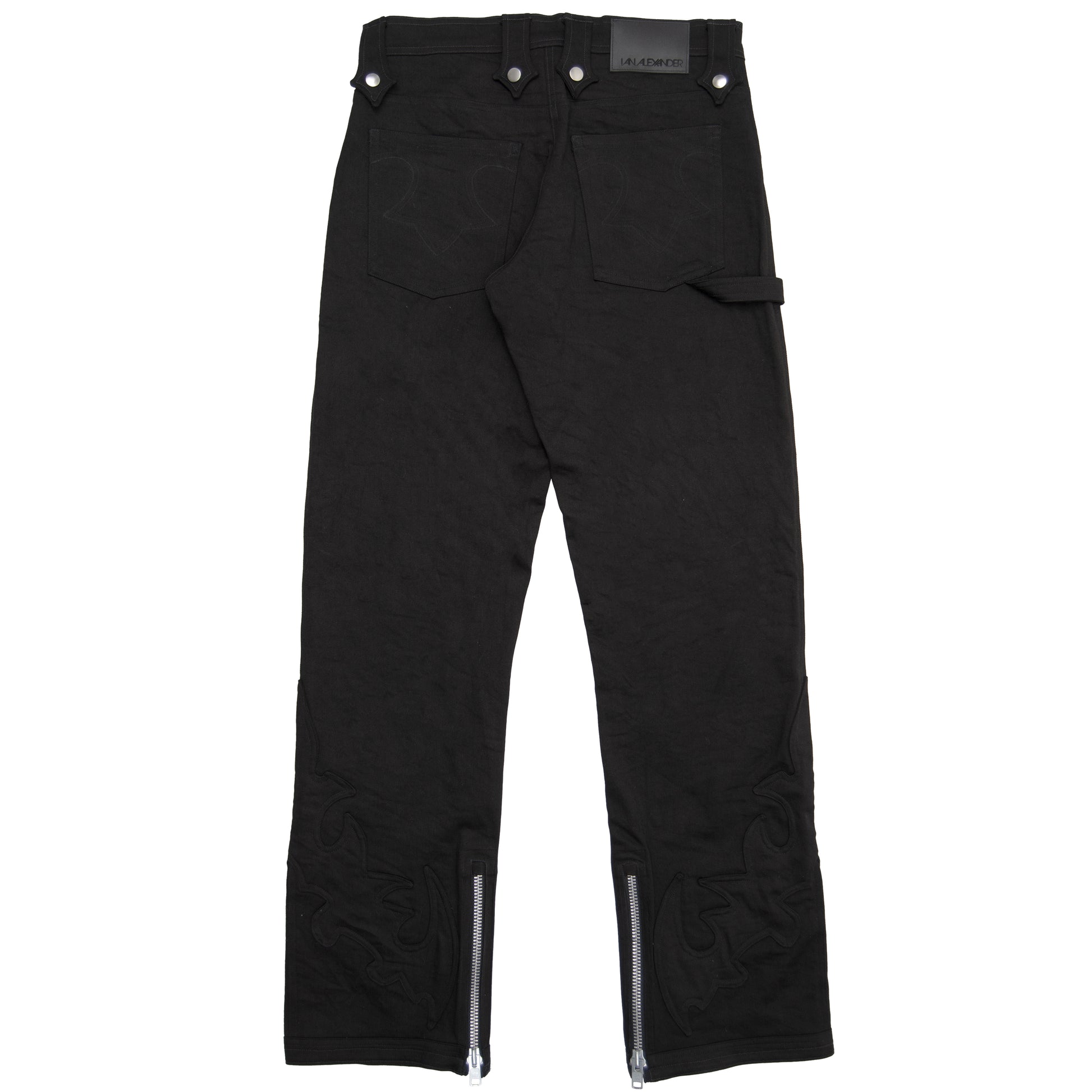 DOUBLE KNEE DENIM WITH STYLIZED FLOURISHES THROUGHOUT