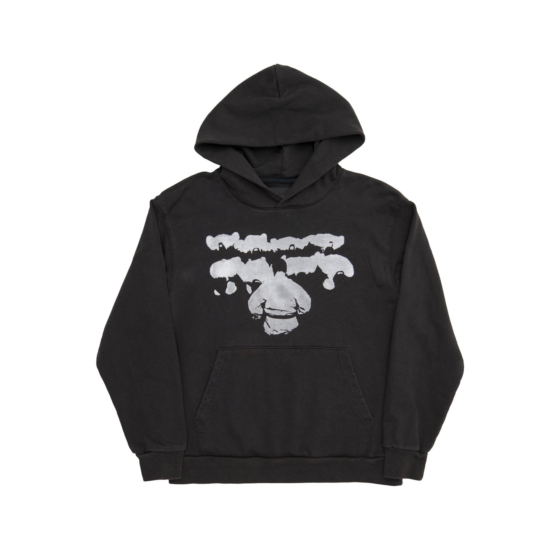 FADED HOODIE WITH PRINTED GRAPHIC ON FRONT AND BACK