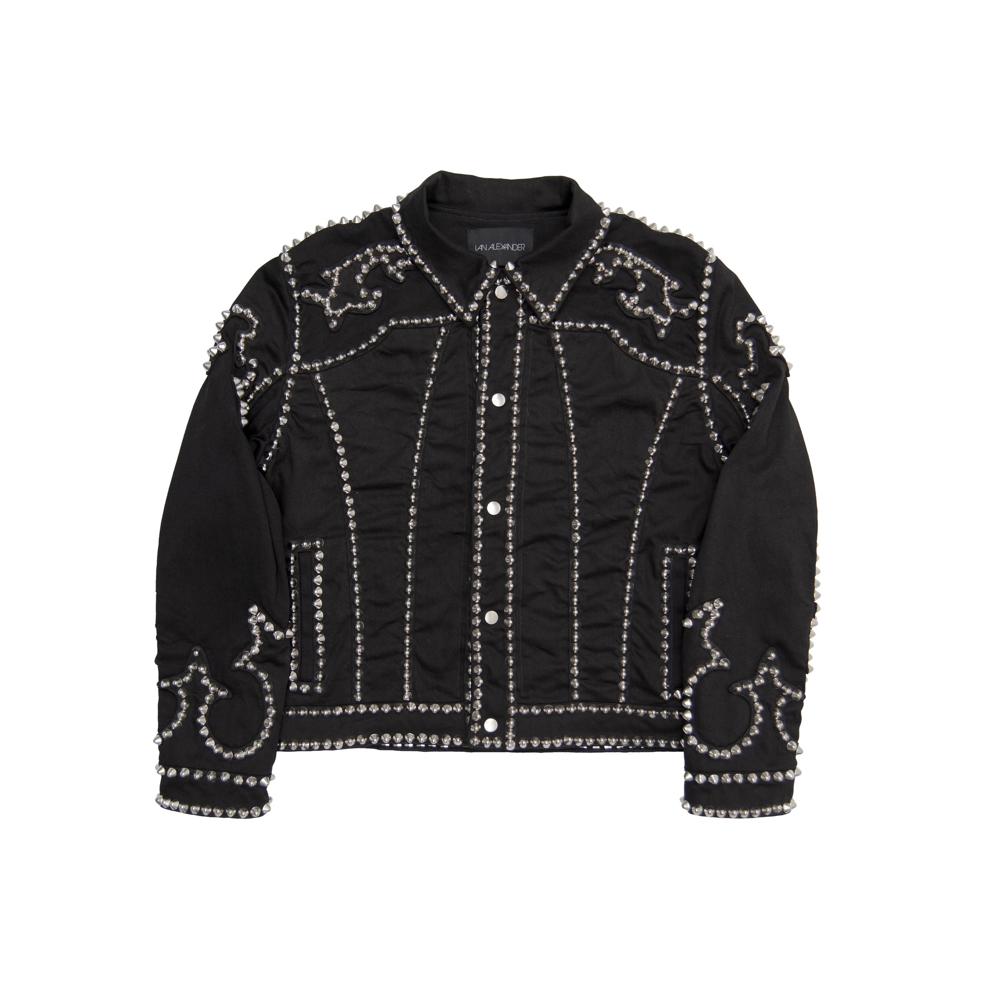 HAND-STUDDED DENIM JACKET WITH STYLIZED WESTERN FLOURISHES THROUGHOUT